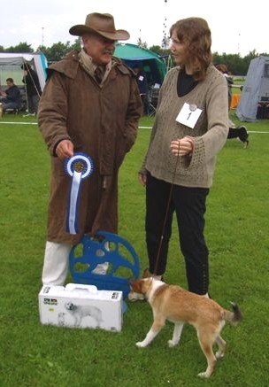 Kritik: Medium sized dog. Very fine head. Excellent set ears. Correct topline. Medium sized tail. Correct movement. A little undershot.